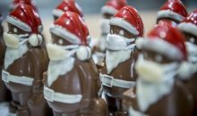 Szájmaszkot tesz a csokimikulásokra egy magyar cukrász
