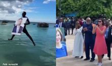 Egy bizarr szertatásról készült vidó tarol a neten– Tanzániában a Iohannis házaspár hatalmas képeivel ugranak vízbe a helyiek